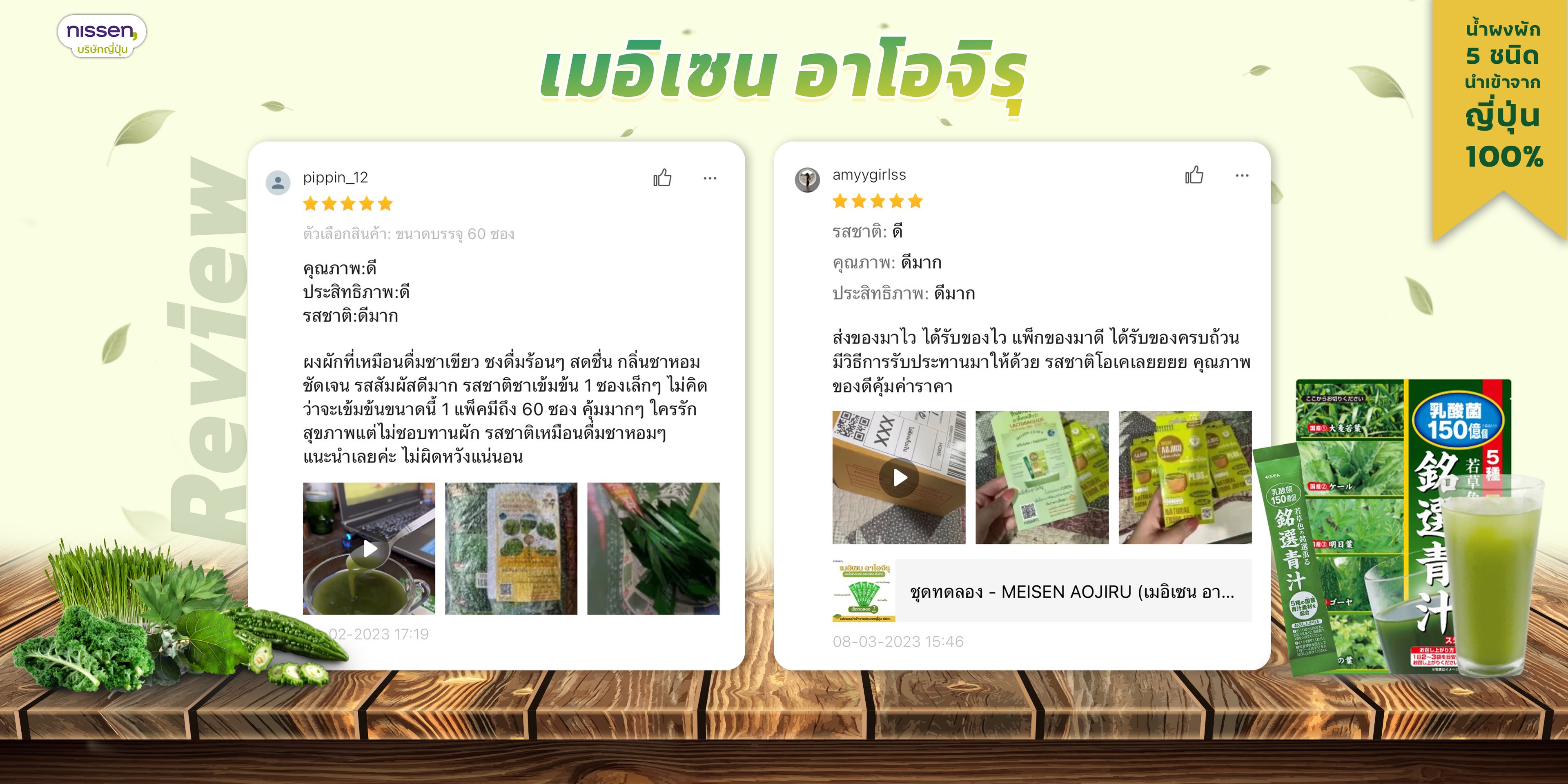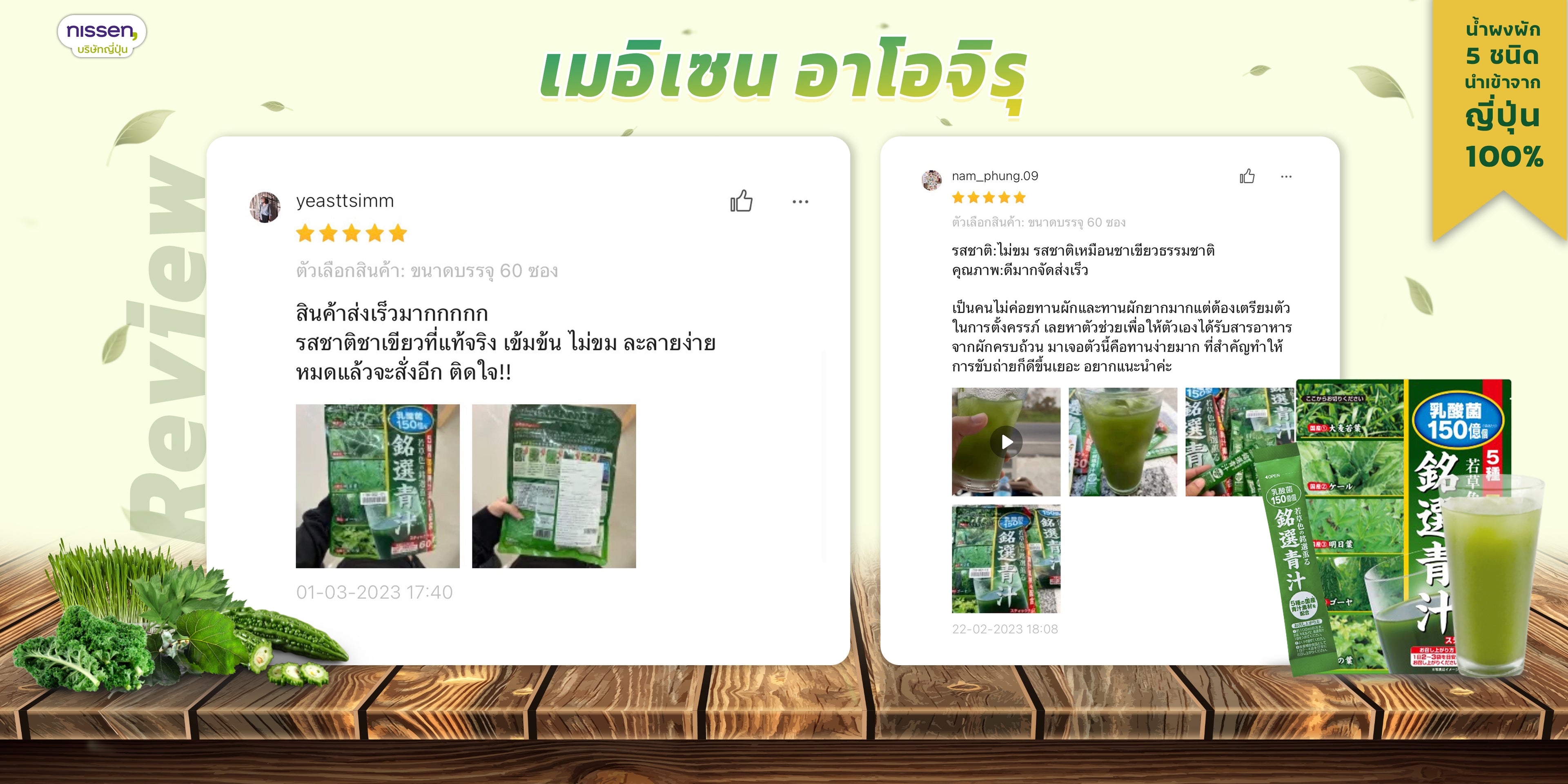 ผงผักรวม 5 ชนิด ผสมแลคโตบาซิลลัส นำเข้าจากญี่ปุ่น Meisen Aojiru - เมอิเซน อาโอจิรุ ชุด7ซอง
